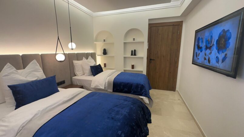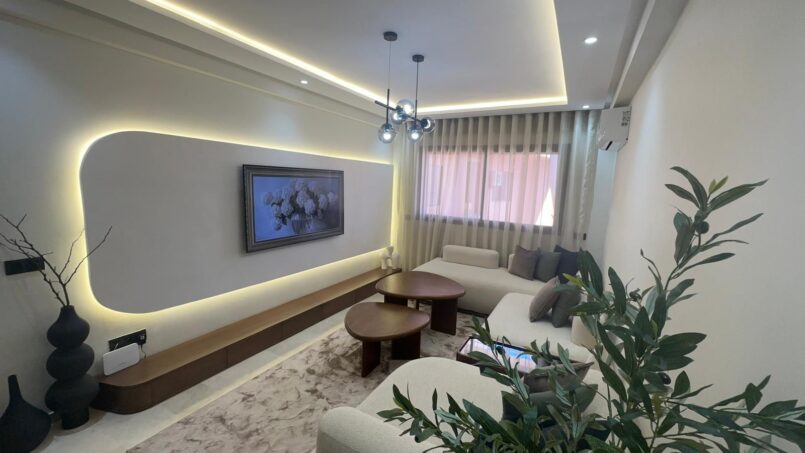 Dès votre arrivée, vous serez séduit par l’atmosphère chaleureuse et contemporaine de cet appartement. Le salon spacieux, élégamment décoré, bénéficie d’une belle luminosité naturelle grâce à ses grandes ouvertures. L’agencement a été pensé pour offrir un espace de vie convivial, idéal pour se détendre après une journée de découverte à Marrakech ou pour partager des moments en famille ou entre amis.