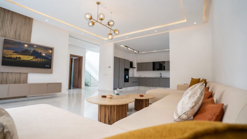 • Un salon moderne et lumineux, idéal pour se détendre ou partager des moments conviviaux