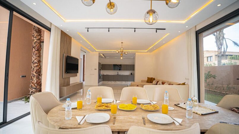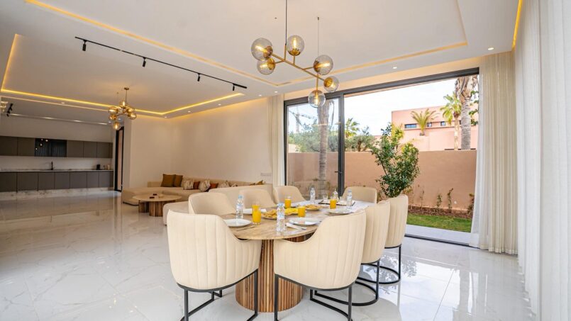 Idéale pour une location courte durée à Marrakech, cette propriété offre un cadre calme, sécurisé et élégant, parfait pour des vacances en famille ou entre amis.