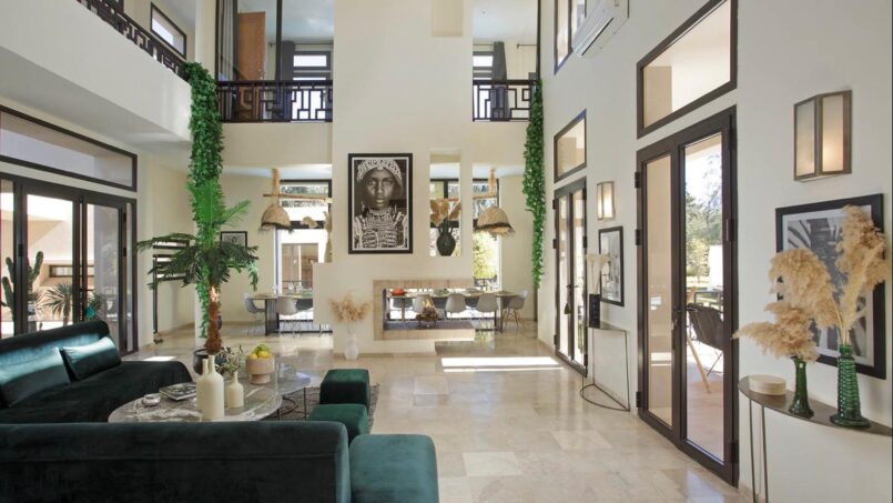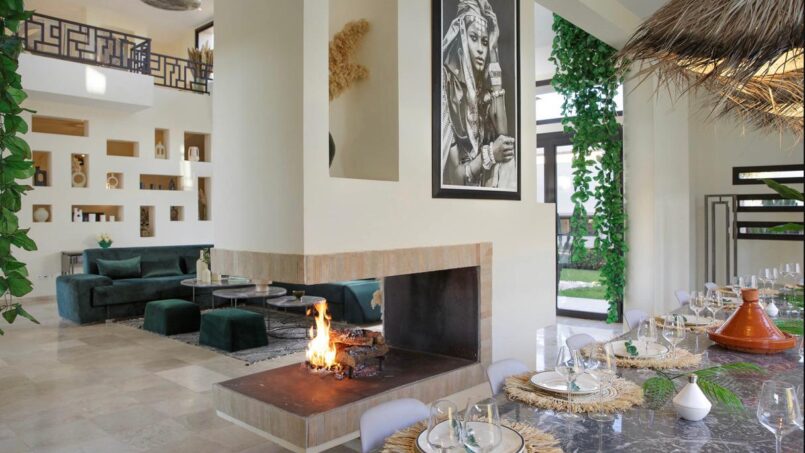 Située à seulement quelques minutes du centre, sur la prestigieuse Route de l’Ourika km 9, cette villa offre une atmosphère chic et moderne, pensée pour accueillir familles, groupes d’amis et séjours VIP.